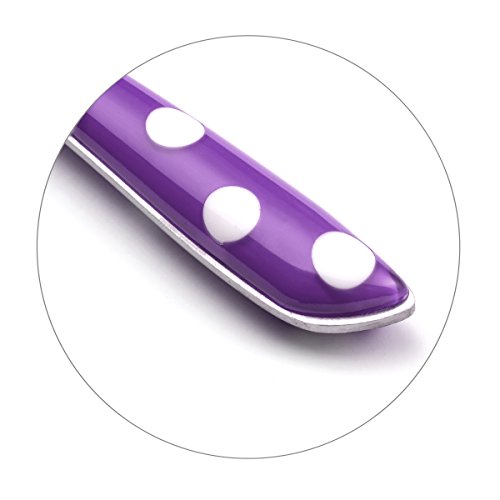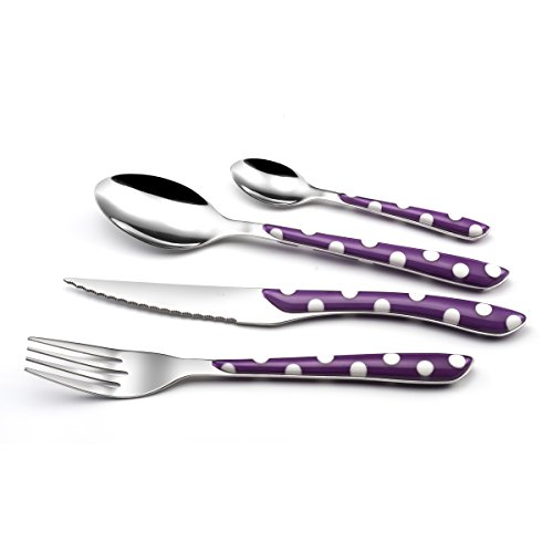 Gekleurd bestek, paarse handgreep met witte stippen en 18/0 roestvrij staal in hoogglans afwerking