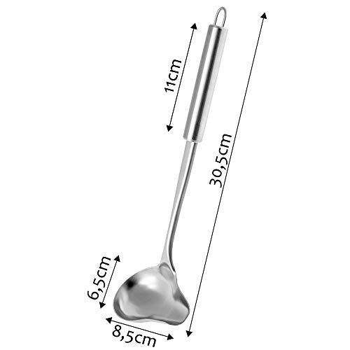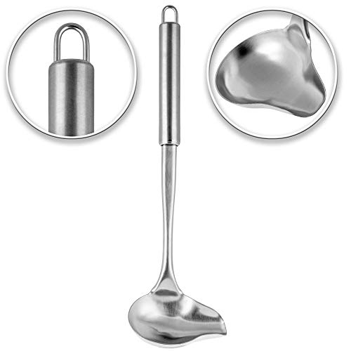 Specification: KADAX Opscheplepel, sauslepel van roestvrij staal, sauslepel met lange steel, pollepel, gietlepel, vorlepel met ovale haak, zilver, vaatwasmachinebestendig