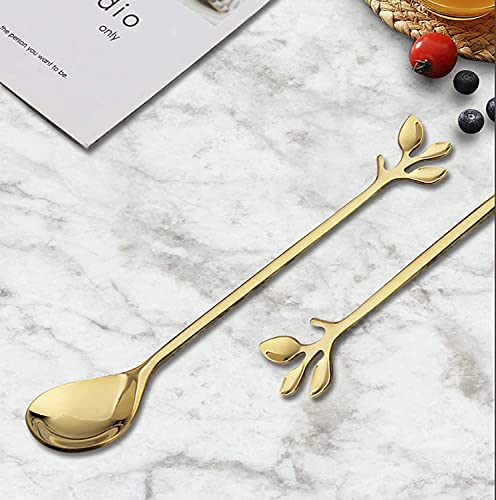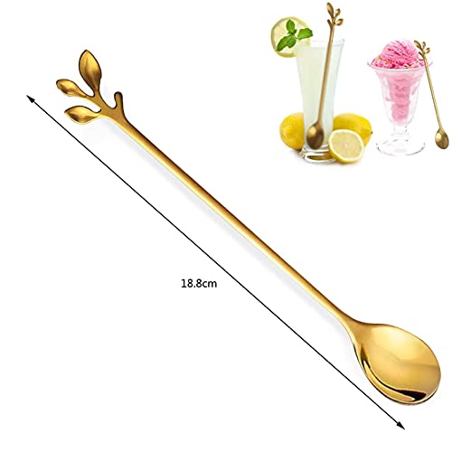 Nothers IJslepelset met lange handgreep, 6 stuks 18,8 cm ijslepel, creatieve bladgouden cocktailroerlepel, premium roestvrij staal in levensmiddelenkwaliteit, lange lepel, hoogglans afwerking en vaatwasmachinebestendig