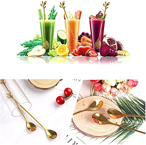 Specification: Nothers IJslepelset met lange handgreep, 6 stuks 18,8 cm ijslepel, creatieve bladgouden cocktailroerlepel, premium roestvrij staal in levensmiddelenkwaliteit, lange lepel, hoogglans afwerking en vaatwasmachinebestendig