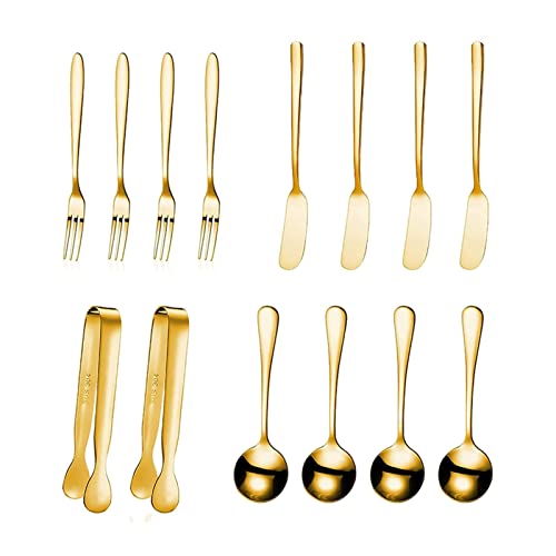 Onze bestekset bestaat uit 14 stuks, waaronder 4 spreidmessen, 2 mini serveertangen, 4 kleine lepels en 4 kleine vorken. Het is praktisch keukengerei dat kan worden gecombineerd met een verscheidenheid aan boters, jam, kazen en meer. Onze kaassmeermessen zijn duurzaam, slijten of roesten niet en zijn gemakkelijk te hanteren. Het kan worden gewassen met water en een vaatwasser, waardoor u tijd en moeite bespaart.