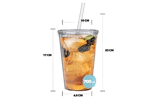 Marfrand harde plastic beker met deksel en rietje, BPA-vrij, incl. herbruikbare stickers en e-book voor cocktails, set met 4 herbruikbare kunststof glazen, 700 ml (transparant)