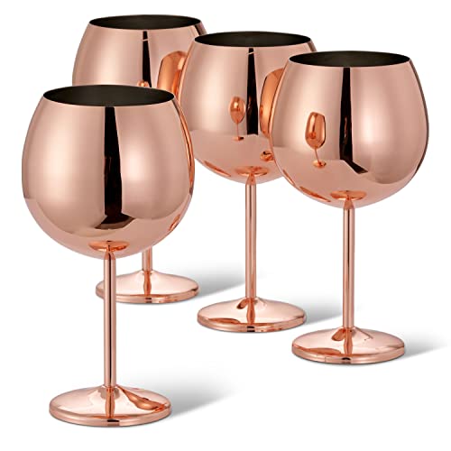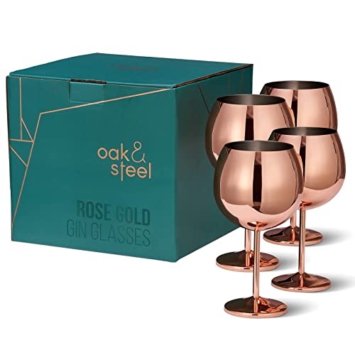 Specification: Oak & Steel – 4 Grote Roestvrijstalen Ballon Gin Tonic Cocktailglazen (RVS, XL 700ml) – Roségoud/Koper – Stevig en Onbreekbaar – Cadeau voor Verjaardagen en Valentijnsdag