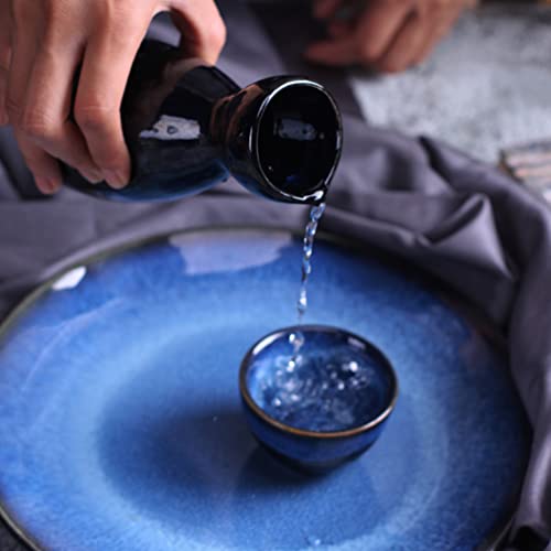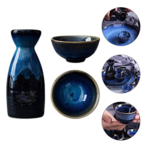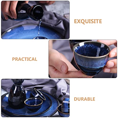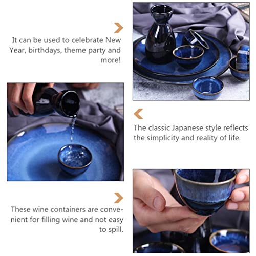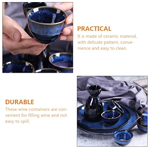 Hemoton 1 Set Keramische Japanse Sake Set met Tokkuri Fles Ochoko Cups Thee Cup Vintage Sake Waterkoker Wijnpot Drinkgerei Gift voor Thuis Bar Blauw