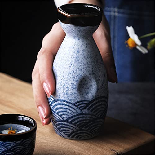 Specification: N/A Japanse stijl zee rimpel sake wijn cup creatieve wijn set huis keramische sake wijn fles flagon likeur geesten pot drinkwaren (Color : Blue, Size : 1 set)