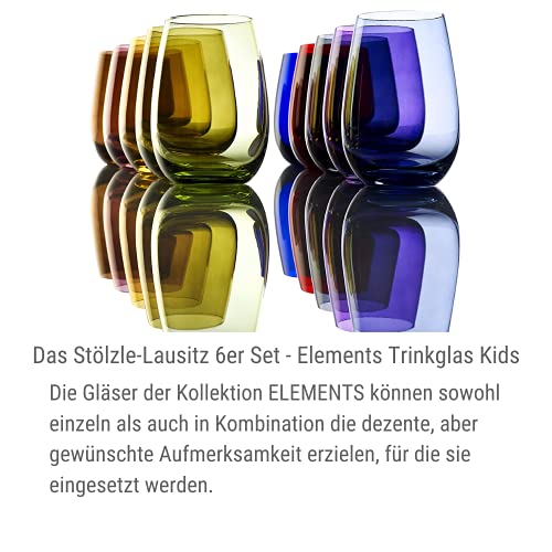 Stölzle Lausitz Elements Kids beker, 335 ml, set van 6 glazen, vaatwasserbestendig, kleurrijke drinkbeker, hoogwaardige kwaliteit