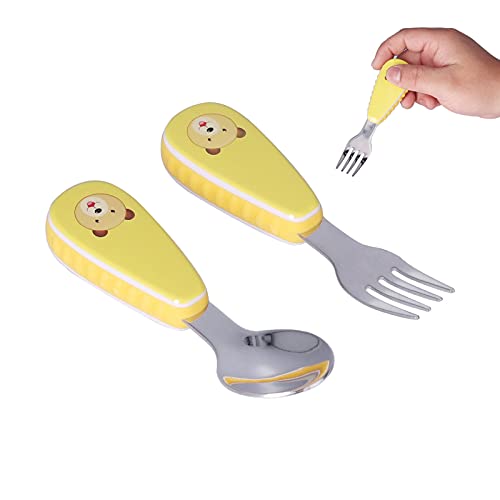 Kinderen Bestek, Cartoon Decoratie Kinderbestek Set Abs Materiaal voor Thuis Keuken voor Gezinnen met Kinderen(geel)