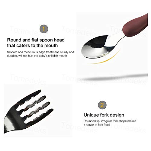 Ontwerp: schattig ontwerp met cartoon handvat; gladde rand van lepel, geen kwaad; onregelmatig vork ontwerp, gemakkelijker te vork voedsel.. Aangepaste draagbare doos, kan worden opgeslagen, reizen, openlucht.