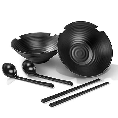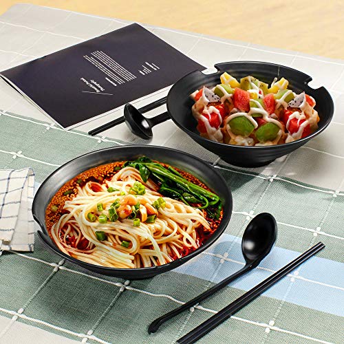 2 sets (6-delige) saladekommen, huiskeuken-Japanse Ramen-soepkommen, mengkommen Servieset (met eetstokjes en een lepel), zwart