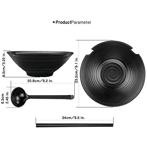 Specification: 2 sets (6-delige) saladekommen, huiskeuken-Japanse Ramen-soepkommen, mengkommen Servieset (met eetstokjes en een lepel), zwart