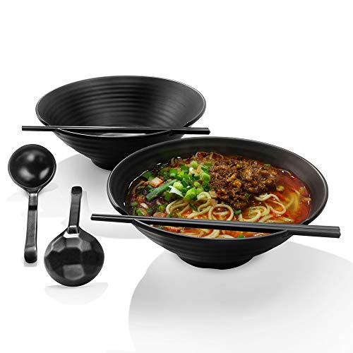 GROOT FORMAAT: De verpakking bevat twee kommen met een inhoud van 1100 ml / 37 ounces, twee lepels en twee paar eetstokjes, elk 9-inch soepkom, diameter 23 cm / 9 inch, hoogte 8 cm / 3 inch.