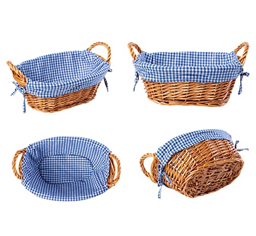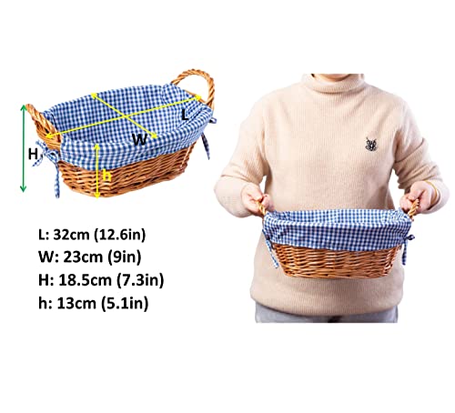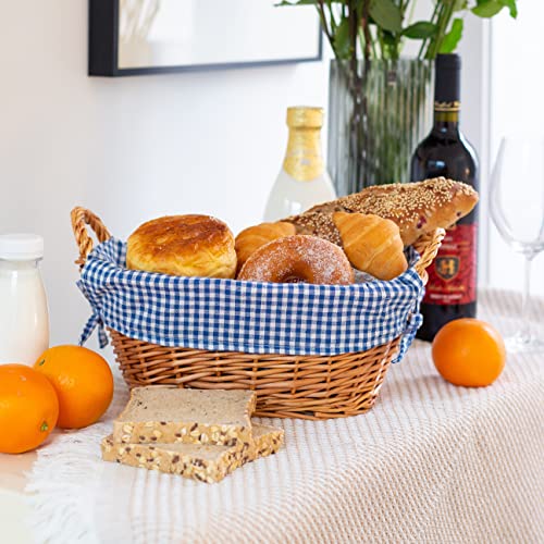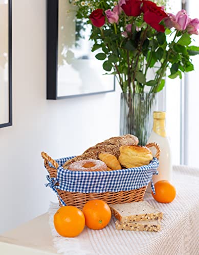 eGenuss Rieten Broodmanden met zijgrepen en uitneembare stoffen bekledin | Set van 2 manden 32 x 23 x 13 cm | Geruit patroon Blauw en Wit