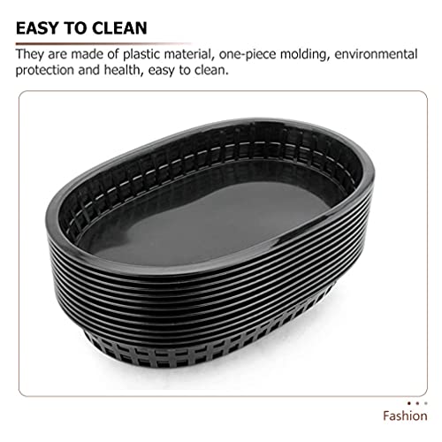 Specification: Yardwe 12 Stks Ovaal Plastic Mand Voedsel Serveermanden Fastfood Mandketten Snack Fry Mand Plastic Opbergmand Bin Keukenaccessoires (Zwart)