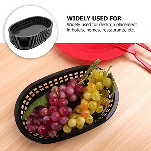 Yardwe 12 Stks Ovaal Plastic Mand Voedsel Serveermanden Fastfood Mandketten Snack Fry Mand Plastic Opbergmand Bin Keukenaccessoires (Zwart)