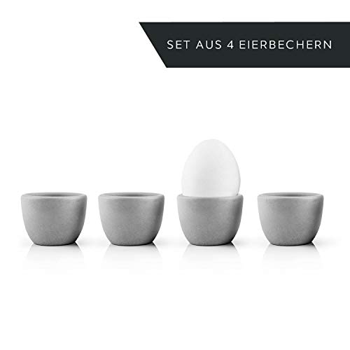 HEYNNA® Premium eierdopjes set van 4 gemaakt van stevig beton/grijze eierhouder in tijdloos Heynna-design – ⌀5cm