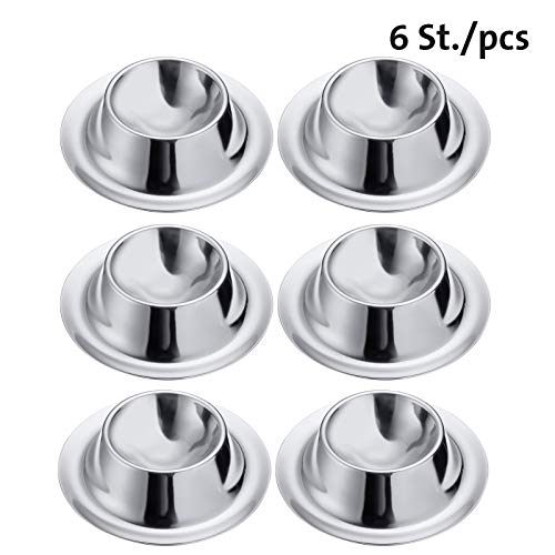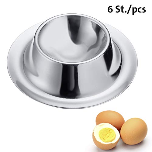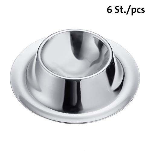 Set van 6 mooie, ronde, roestvrijstalen eierdopjes met een eenvoudig, tijdloos design; voor het perfecte eitje; geschikt voor kippeneieren met een normale grootte