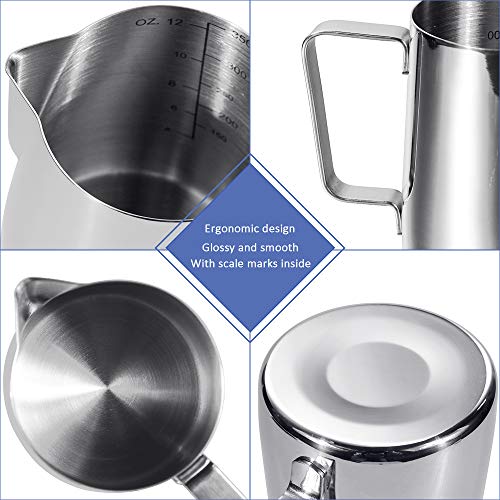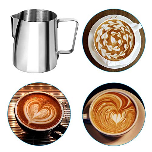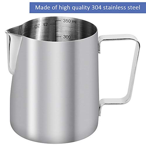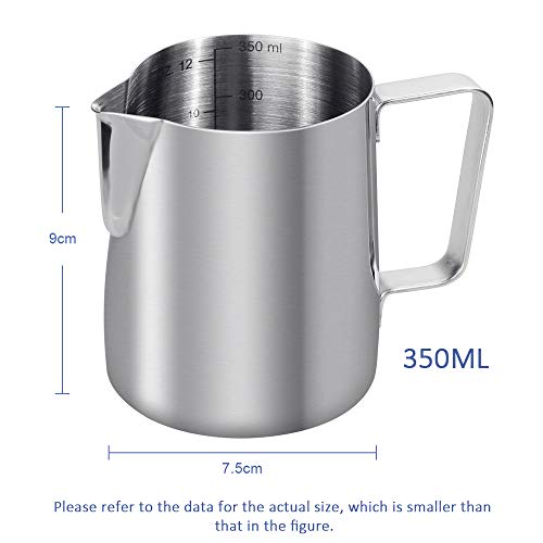 Specification: Anpro Melkkannetje, melk pitcher 350 ml Melkkan van roestvrij staal, melk opschuimen voor cappuccino en latte, zilver (9 × 7,5 cm)