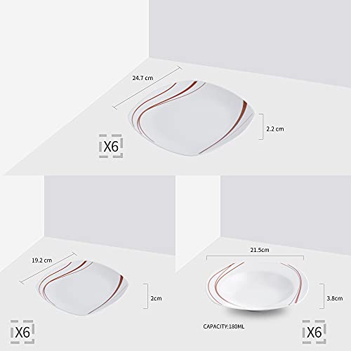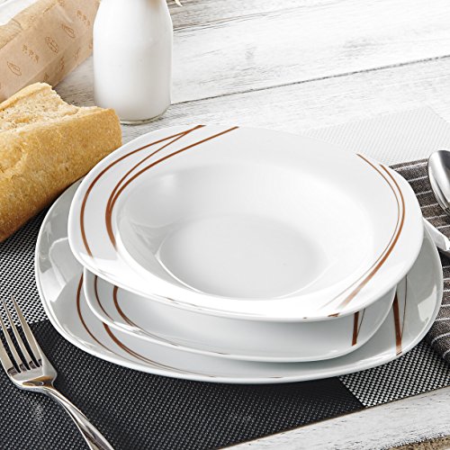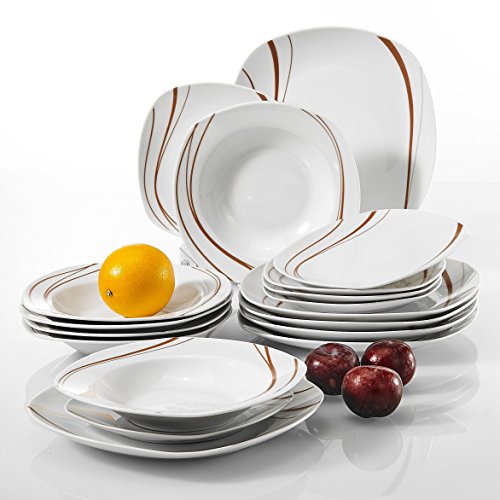 Specification: VEWEET Bonnie, tafelservies van porselein, 18-delig, bordenset voor 6 personen, elk met 6 dessertborden, diepe borden en platte borden