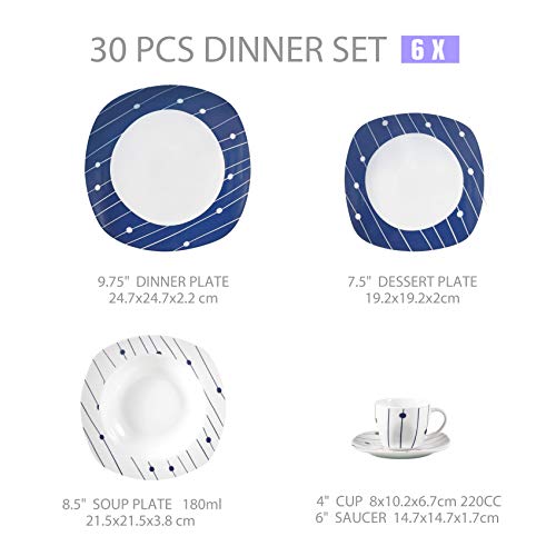 Specification: VEWEET Porseleinen tafelservies ‘Dot’ | 30-delig combiservies, servies, blauw-wit