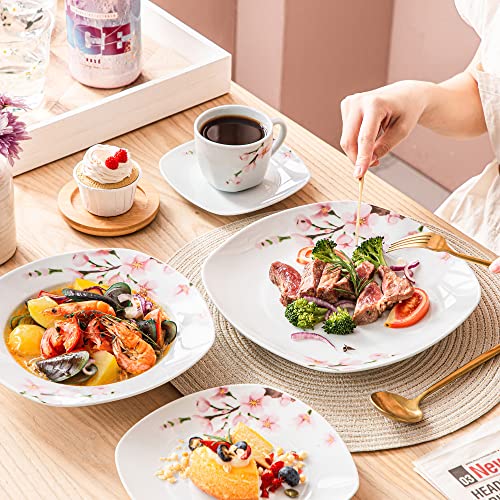 Hoogwaardige afwerking — gemaakt van premium porselein, de serviesset is robuust, vaatwasmachinebestendig, magnetron- en koelkastbestendig