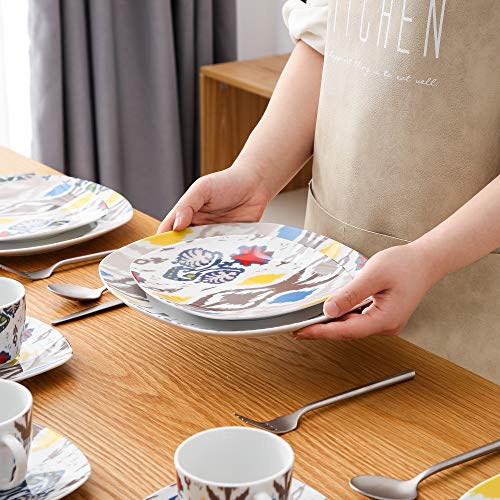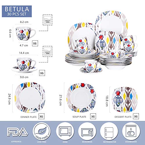 Specification: VEWEET Betula Tafelservies van porselein, 30-delig, combiservies bevat koffiekopjes 200 ml, schoteltjes, dessertborden, dinerborden en soepborden, compleet servies voor 6 personen