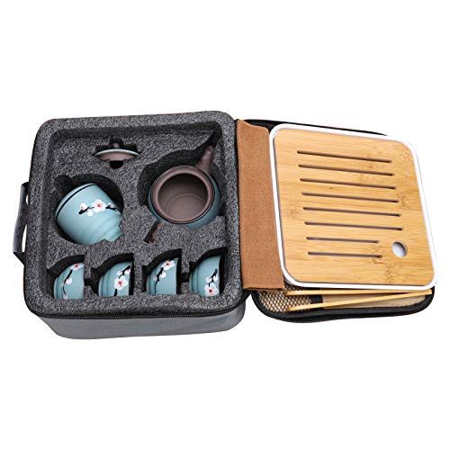 Specification: fanquare Japanse draagbare reistheeset met reistas, kersenbloesem, Zisha Kung Fu, theeservies voor volwassenen, een theepot, 4 theekopjes en 1 theebus
