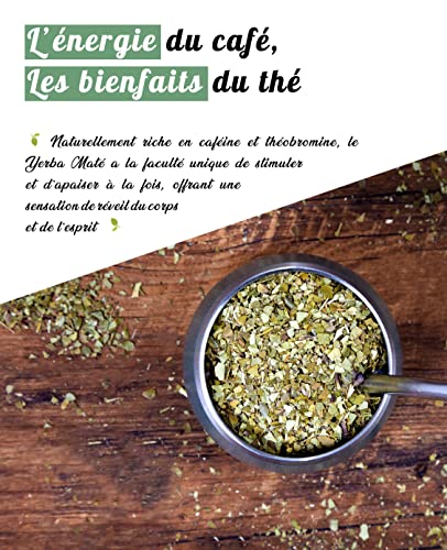 🌿 NATURAL ENERGIZING INFUSION 🌿 : Yerba Maté is een natuurlijk stimulerend middel dat rijk is aan cafeïne en dat het vermogen om zich te concentreren en te vechten tegen fysieke, gespierde en mentale vermoeidheid verbetert. In tegenstelling tot koffie veroorzaakt het geen prikkelbaarheid en bevat het theobromine, een natuurlijk spierverslappend middel dat stress en angst vermindert.