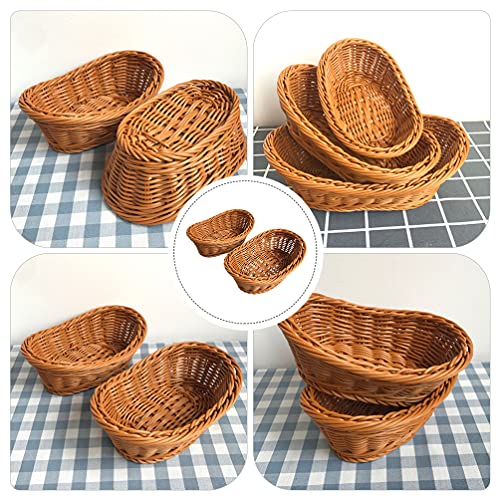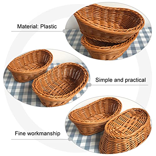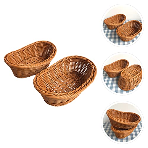 Hemoton 2 Stuks Plastic Geweven Manden Rieten Geweven Brood Manden Ovale Fruitmanden Voedsel Serveren Houders Voor Groenten Home Kitchen Restaurant Picknick Lichtbruin